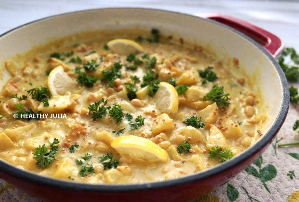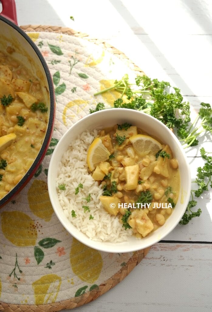 Retrouvez la recette du curry de céleri et haricots blancs sur Healthy Julia…